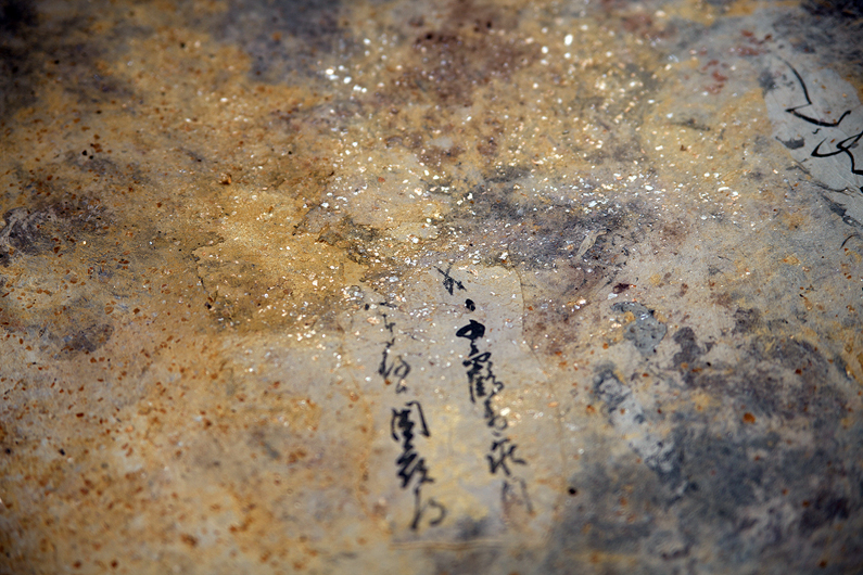 305x147CM 雁皮古紙、弁柄、顔料、 古文書、 墨、雲母 2009年