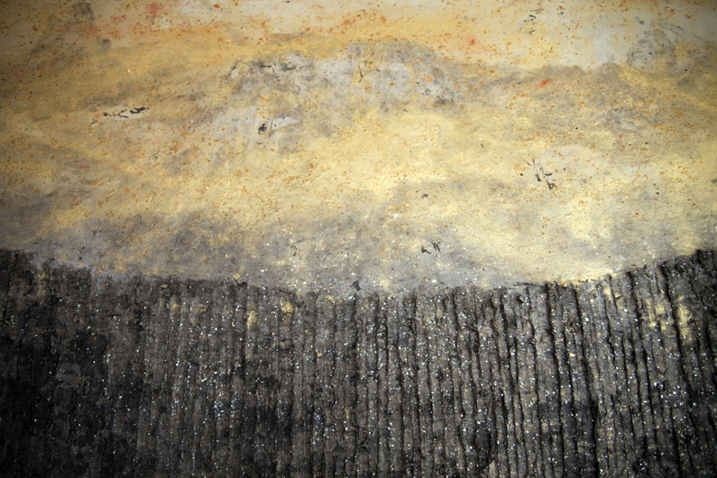 240x95CM 雁皮古紙、弁柄、顔料、 古文書、 墨、雲母 2009年