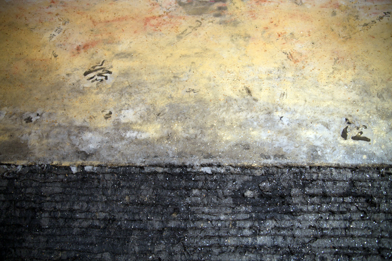 260x150CM 雁皮古紙、弁柄、顔料、 古文書、 墨、雲母 2009年