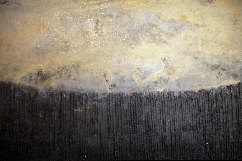 300x110CM 雁皮古紙、弁柄、顔料、 古文書、 墨、雲母 2009年