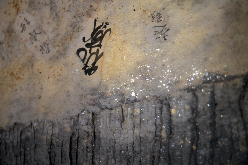 210x90CM 雁皮古紙、弁柄、顔料、 古文書、 墨、雲母 2009年